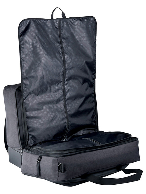 Built specifically for the frequent traveler. This innovative design combines both a carry-on size duffel and a removable zip-out garment bag. Other smart features include large zippered front organizer pocket and integrated shoe pockets. Padded and adjustable shoulder straps, signature elleven lining and hardware. Free run charges up to 7500 stitches.