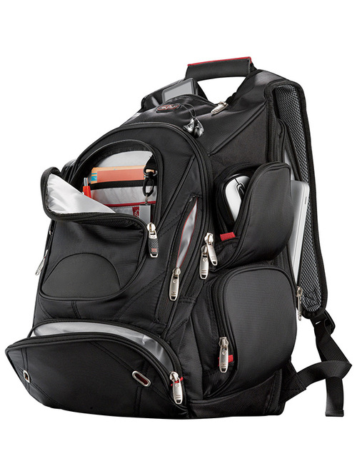 This exclusive design has a designated laptop-only section that unfolds to lay flat on the X-ray belt to increase your speed, convenience and security. Side entry compartment holds up to 17" laptop. Main zippered compartment with file divider, interior side pockets and removable techtrap elastic organizer panel. Zippered media pocket accesses ear bud port. Front zippered pocket with deluxe organization and key fob. Front lower & hidden pockets for valuables. Three side roomy zippered pockets. Yoke-style handle. Padded back and shoulder straps for comfort. Back panel designed to slip over trolley handles. Free run charges for embroidery up to 7500 stitches.