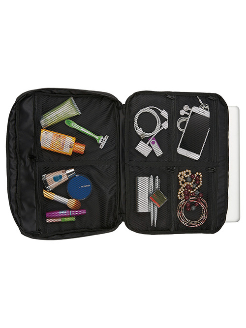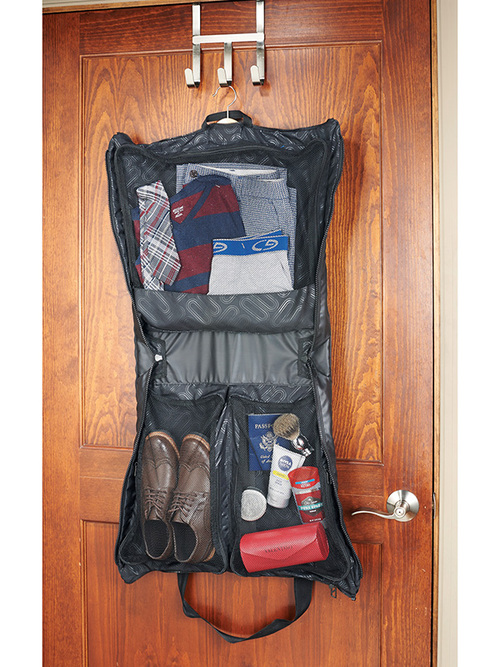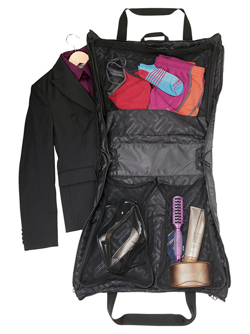 15" Computer Travel Tote with Garment Bag is the answer to all your travel needs. With weather resistant material, this tote helps to protect your items from the elements. The front zippered compartment is home to the removable packing cube which has a dedicated padded 15" laptop compartment. The cube unzips and opens to expose zippered mesh compartments to easily organize items such as headphones, cables, jewelry, medicine and all other travel essentials. A side zipper runs along the length of the bag creating a garment sleeve which can hold suit jackets, dresses or any other wardrobe essentials. The bag itself unzips completely to allow you to hang it in your closet, exposing several more zippered packing cubes to keep your shoes, clothing, additional cords and electronics safe yet easily accessible.Free run charges for embroidery up to 7500 stitches.